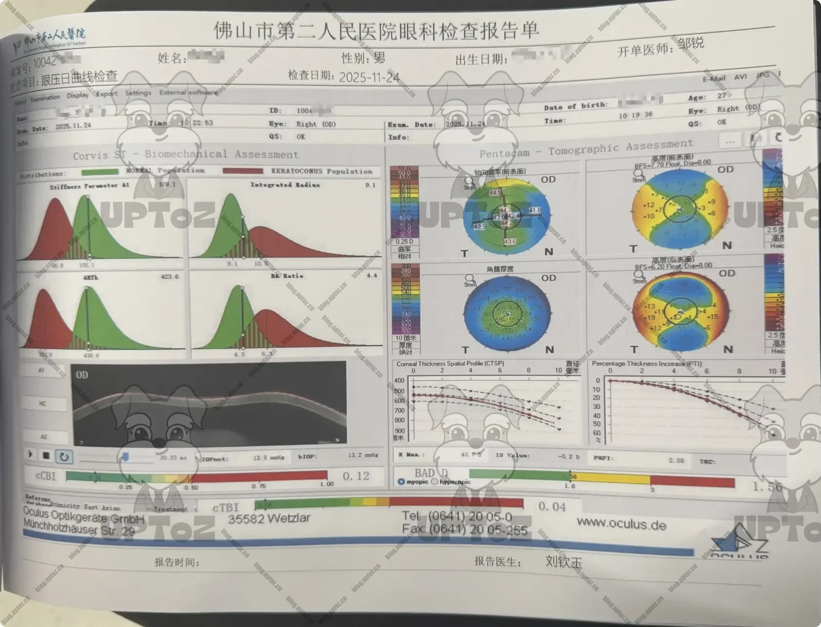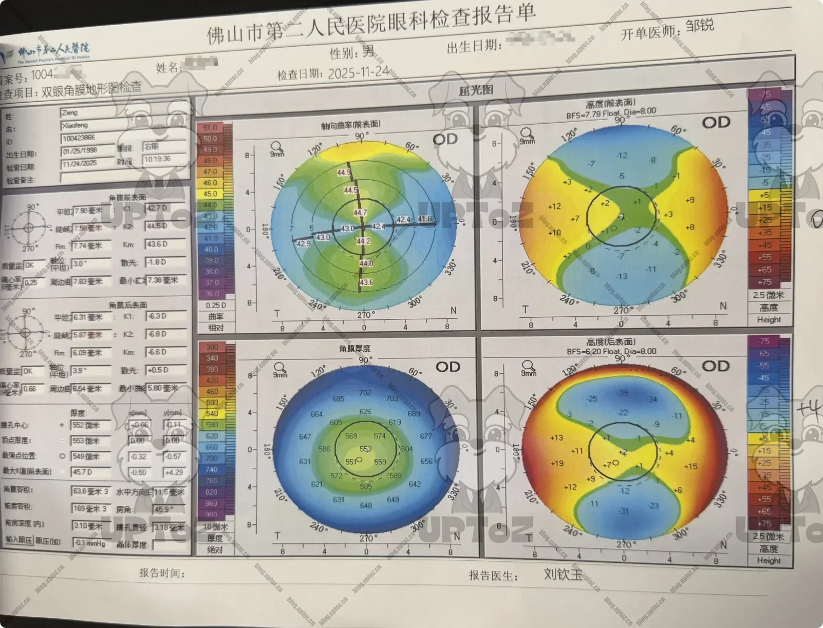 我的双眼近视是425度,而散光是125度。度数不是很高,眼部条件满足手术要求。